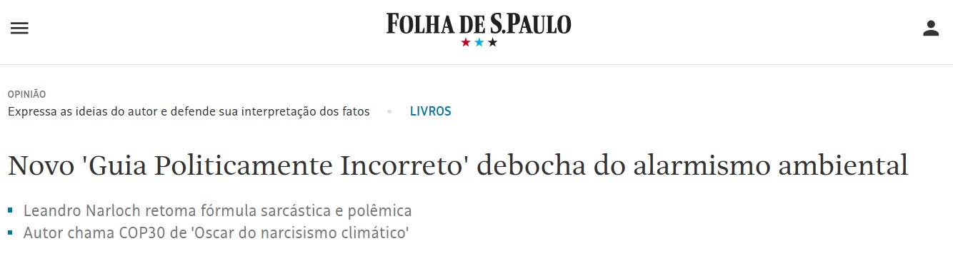 O jornal Folha de S.Paulo destacou a leitura do novo livro de Leandro Narloch, o "Guia Politicamente Incorreto do Meio