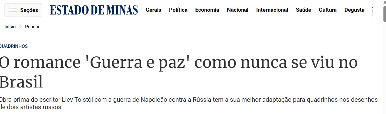 ESTADO DE MINAS – Indicação do quadrinho “Guerra e Paz”