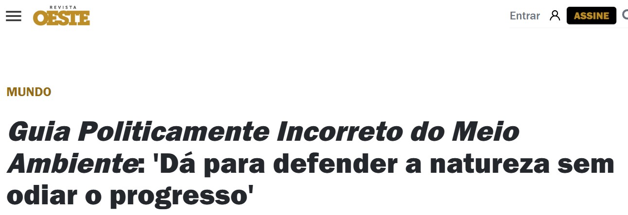 REVISTA OESTE – Indicação do livro “Guia Politicamente Incorreto do Meio Ambiente”
